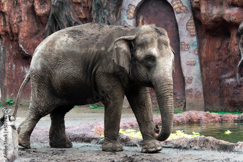 Elephant in captivity in a zoo in Guatemala City called La Aurora, caged space, limitation of freedom, human hegoism.