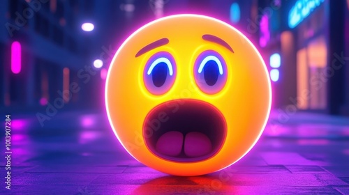 emoji with glowing neon lights, showing surprise or awe, with detailed HD quality and expressive gestures.