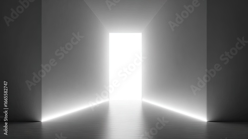 corridor, minimalist, geometric, white, floor, modern, grey, abstract, greyscale, illumination, clean, space, hallway, empty, light, contemporary, pathway, portal, bright, architecture, interior, perspective, wall, illuminated, simple, design, tunnel, futuristic