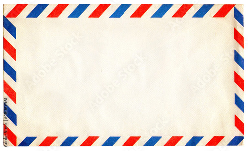 Empty vintage air mail envelope isolated on white