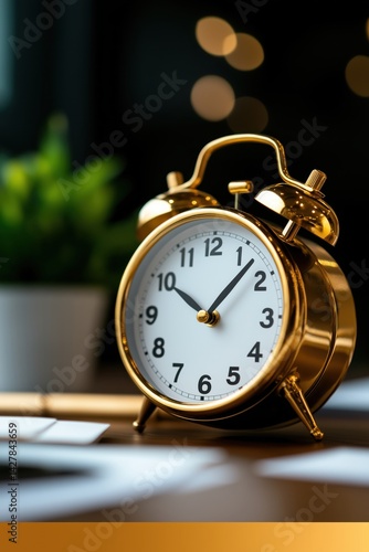 Enhancing workplace productivity with time management tools on an office desk featuring a clock and sticky notes