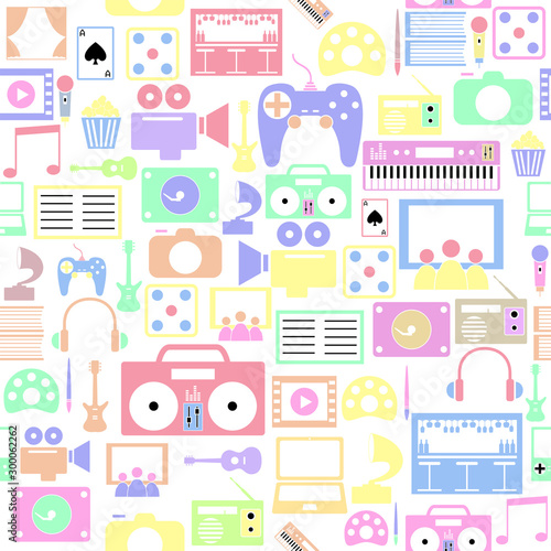 pattern, seamless, background, retro, game, vector, cinema, motion picture, entertainment, illustration, video, design, icon, gamer, doodle, technology, computer, vintage, circus, wallpaper, white, isolated, texture, symbol, electronic, camera, multimedia, media, play, set