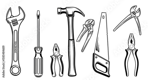 Essential Hand Tools Detailed Line Art for DIY and Construction Projects