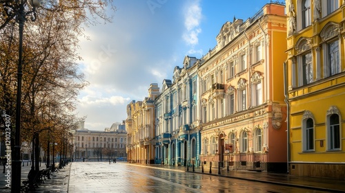 architecture, historic, building, street, european, colourful, scenic, urban, city landscape, picturesque, old, travel, tour tourism, outdoors, sky, cloud, structure, facades, autumn, tree, wet, pavement, morning, daylight, heritage, classical, town, vibrant, cultural, destination, traditional, aesthetic, bright, serene, beautiful, charming, downtown, elegant, historical, majestic, earth, quaint, view, background, copy space