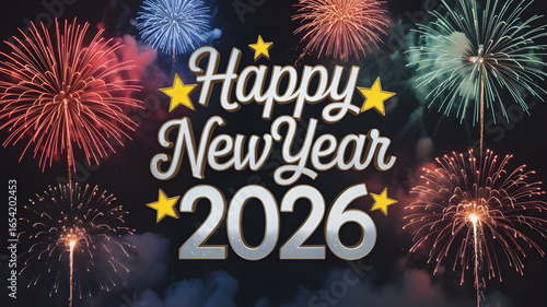 Exciting Happy New Year 2026 celebration with colorful fireworks display