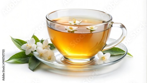 Exquisite Jasmine Green Tea Leaves on White Isolated Background. Fragrant Herbal Beverage Concept for Relaxation, Aromatherapy, Natural Remedies. Organic Tea Leaves Assortment for Tea Lovers and Welln