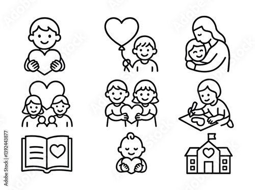 family, love, children, nubes, togetherness, care, affection, relationship, bond, school, education, reading, drawing, hugging, community, oneness, support, nurturing, sibling, icon, linear, simple, outline, design, warm, emotional, happiness, connection, parenting, mother, father, children, baby, charity, friendship, teaching, learning, empathy, guidance, illustration, lifestyle, wholesome, caring, tenderness