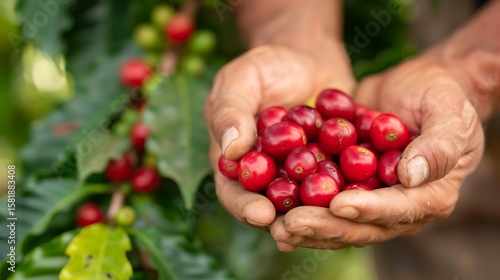 Farmer Hands Holding Ripe Coffee Cherries