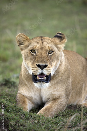 female, lion, panthera, leo, masai, mara, national, reserve, kenya, africa, alert, animal, closeup, day, defensive, environment, front view, growling, laying, mouth open, nature, nobody, one animal, outdoors, remote, wildlife, african, colours, colours, daytime, isolation, kenyan, lay, outside, seclusion