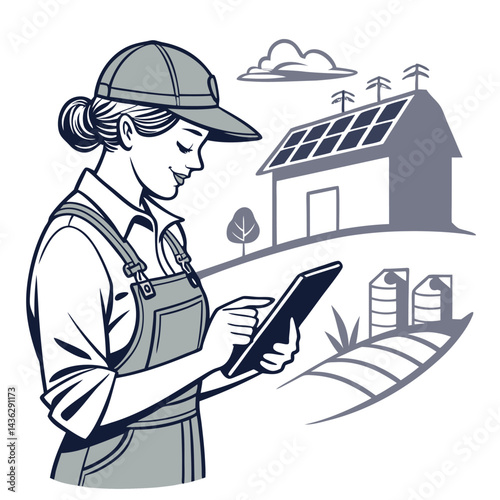 female-farmer-with-digital-tablet-on-a-modern-farm vector image on white background