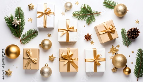 christmas, decoration, gift, holiday, christmas, celebration, ball, tree, present, ornament, box, winter, gold, gold, ribbon, bow, new, year, celebrate, tree branch, object, december, bauble, festive, fir, green, pine, season, christmas tree, red, spruce, package, gift, surprise, birthday, isolated, box, decor, design