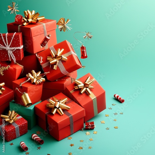 Festive gift stacks for celebrations indoor setting photography bright and cheerful environment aesthetic view holiday concept