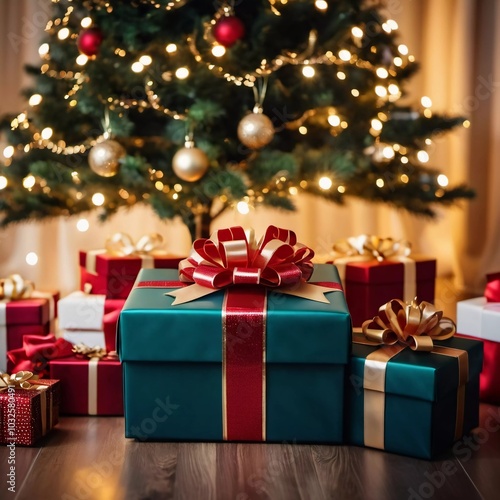 gift, bow, gathering, present, winter, season, wrapped, decor, blue, ornament, colourful, indoor, spirit, holiday, cheerfulness, red, joy, time, joyfulness, christmas, seasonal, ai, decoration, bauble, warmth, gold, year, cheer, shiny, love, tree, wooden floor, stocking, festive, ribbon, cosy, spruce, holiday spirit, merry, green, family, needle, tradition, generative, celebration, new