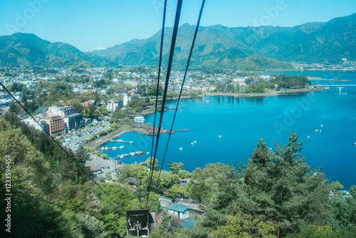mountain, lake, rope, blue skies, sunny, outside, may, spring, morning, copy space, travel, tourist attraction, plant, green, pretty
