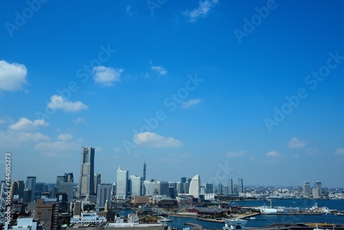 yokohama, japan, asia, east asia, city, landscape, view, port, building, highrise, sea, sunny, blue skies, tour tourism, travel, tourist attraction, showplace, business, office, trade, town, building