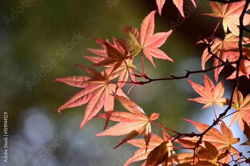 朝日を受ける春もみじ