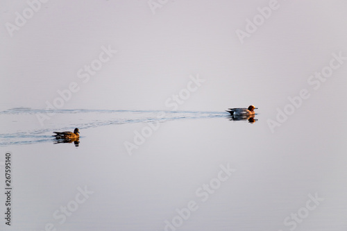 duck, water bird, pair, water surface, water, soft, lake, tuneful, wild, nature, travel, ripple