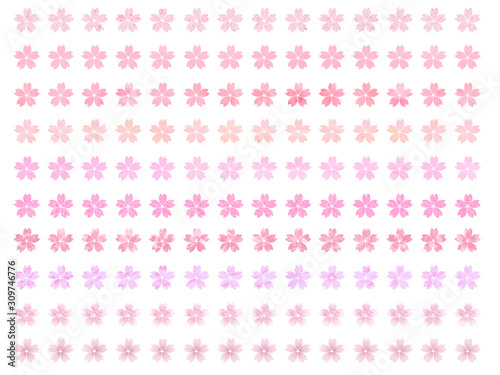 小さな桜を並べたライン 赤、ピンク、紫