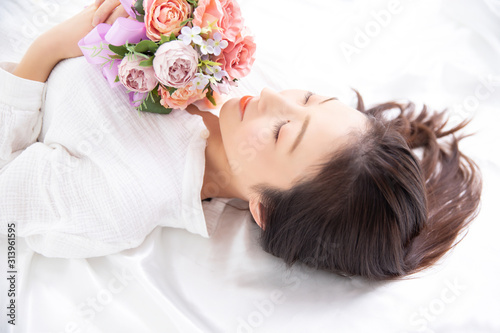 woman, rose, perfume, fragrance, bouquet, silk, smell, profile, roman, sleep, smell, go to bed, gratitude, pink, white, cosmetic, beauty, mother's day, rose, romantic, flower petals, relax, lovely, happy, rose, love, clothes, happiness, pretty, gift, people, japanese, young, smile, light, clothes, model, beauty, actress, drama, clean, love, 30s, mother