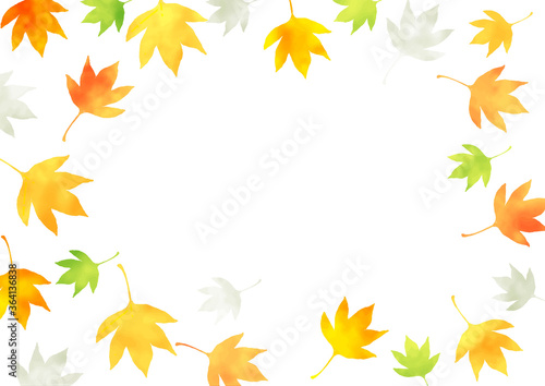 滲み紅葉のふんわりフレーム 水彩テクスチャ
