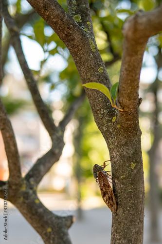 cicala, wood, nature, green, branch, trunk, bark, park, plant, leaf, aged, oak, spring, natural, summer, garden, sky, day, outdoors, fall
