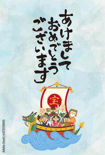 宝船に乗った七福神の年賀状デザイン