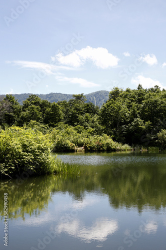 cloud, sky, forest, water, water surface, blue skies, mere, midland, midland, japan, landscape, wood, grove