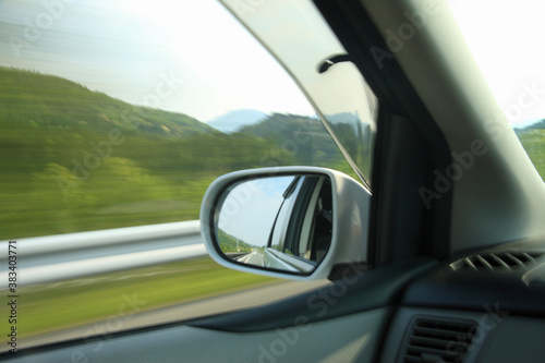 drive, drive, verdure, expressway, pike, rear-view mirror, plant, green, nature, highway, high speed, way