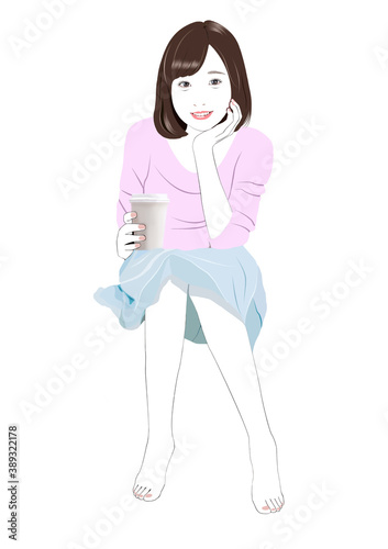 woman, young, beauty, lovely, white, person, sweet, happy, pink, smile, smile, smile, relax, healing, barefoot, barefoot, japanese, seated