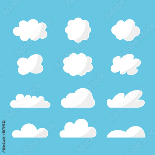 シンプルでフラットな雲のアイコン風イラストセット