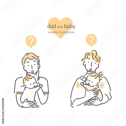 シンプルでかわいいお父さんと赤ちゃんのシーン別線画イラスト素材