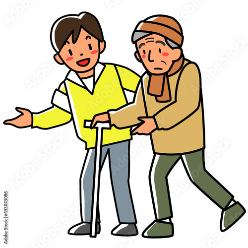 aged, grandfather, grandfather, support, assistance, assistance, stick, people, vector, illustration, man, aged