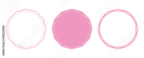 多角形のフレーム、背景素材のイラストセット ピンクカラーバージョン