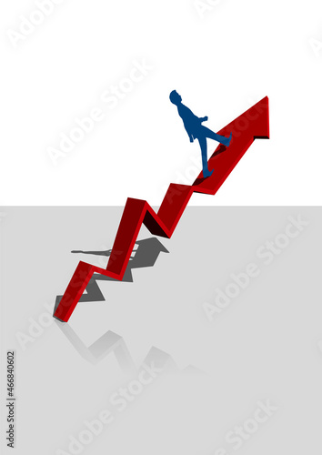 右肩上がりの折れ線グラフ状の矢印を歩む男性のイメージ