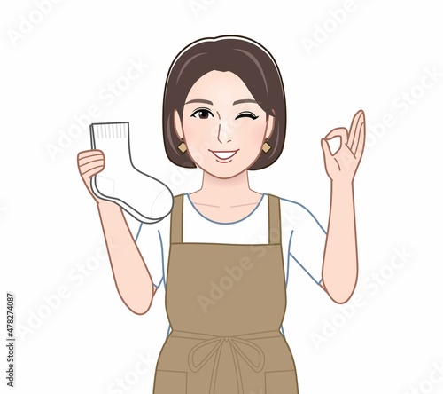 30s, mother, sock, laughing, apron, sock, mother, waist up, homemaker, person, woman, woman, woman, readiness, clothes, front, mother, mother, smile, young, youth, dress, permission, sock