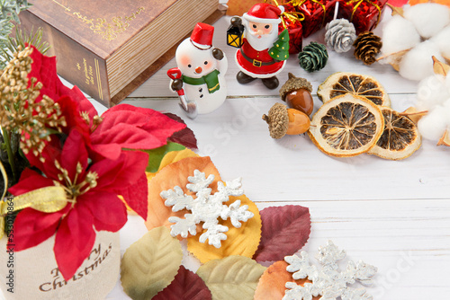 christmas, santa, snowman, christmas flower, ornament, decoration, december, snowflake, acorn, pine cone, gift, cotton, lemon, acer, white background, knick knack, lovely, clean, sweet, display, red, white, brown, yellow, green, chartreuse, winter, ornament, art, white christmas, unmanned