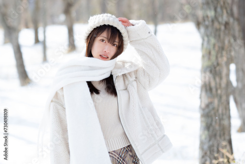 winter, woman, snow, forest, japanese, cold, hat, young, muffler, white, portrait, beauty, outdoors, lovely, season, fashion, fun, person, nature, happy, face, smile, smiling, happiness, woman, wood, park, people, 1, outside, waist up, court, student, walking, smile, open air, travel