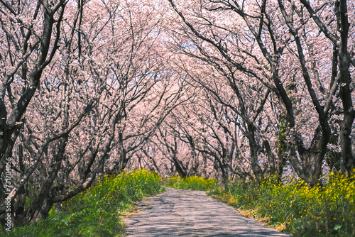 桜並木の道(岐阜県大垣市曽根町 大島堤)