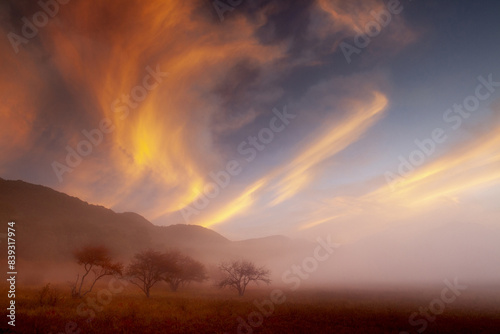 morning, sunrise, bog, cloud, red, sky, sun, landscape, orange, nature, lovely