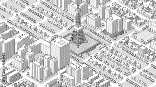 俯瞰から見た立体の街並みベクターイラスト