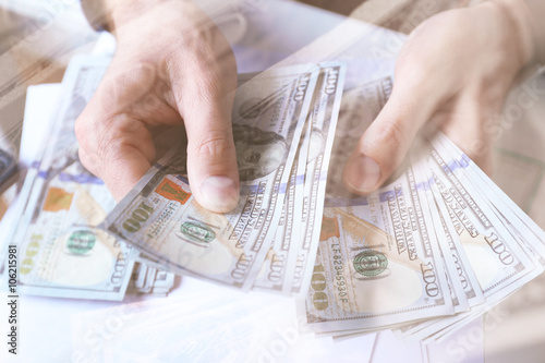 Finance concept. Hands counting money, close up