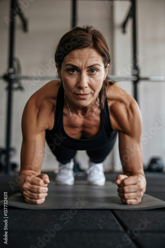fit, mature, female, athlete, core, strength, plank, gym, physical exercise, fitness, endurance, determination, exercise, power, muscle, active, sport, training, wellness, flexibility, health, motivation, agility, dedication, discipline, toned, strong, confidence, lifestyle, performance, vitality, movement, perseverance, empowered, resilience, dynamic, mobility, professional