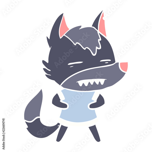 flat color style cartoon wolf showing teeth