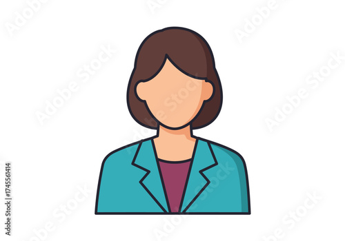 woman, female, person, avatar, illustration, graphic, design, flat, style, portrait, face, hair, brown, teal, blazer, jacket, shirt, purple, colours, outline, simple, modern, business, professional, office, corporate, icon, symbol, character, figure, representation, drawing, art, vector, digital, isolated, cut-out, front, view, head, shoulder, neck, clothing, attire, formal, elegant, stylish, confident, friendly