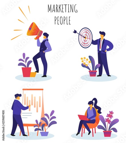 cartoon, flat, vector, illustration, marketing, people, set, written, white, background, guy, speak, into, loudspeaker, man, hold, hand, target, dart, girl, work, laptop, draw, poster, group, social, person, team, strategy, technology, signs, adult, cyberspace, management, creative, modern, young, development, collection, mobile, promotion, meeting, layout, electronic mail, growth, friends, success, job, idea