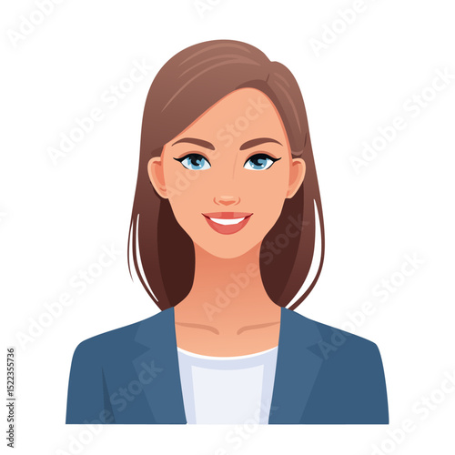 Flat Vector. Portrait of only one Woman. Simple Background.
