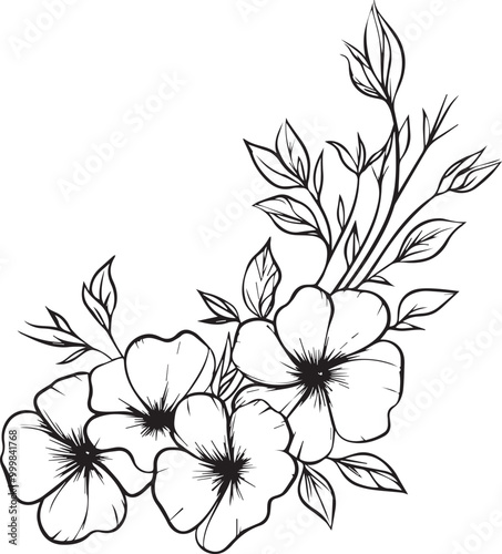 Floral flower outline vector art on a white background, Black outline drawing of floral flowers.