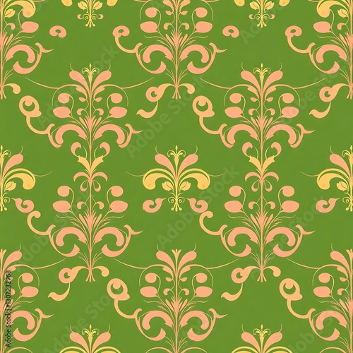 floral pattern, design, green, beige, elegant, floral, background, decorative, ornate, textile, fabric, repeat, tile, wallpaper, vintage, classic, damask, motif, illustration, retro, art, element, texture, surface, abstract, graphic, style, beautiful, artistic, creative, arrangement, detail, structure, fashion, craft, graphic design, artful, flourish, ornament, textile design, digital artwork, art deco, wrapping paper, invitation