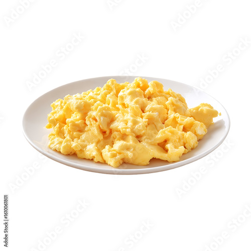 Fluffy scrambled eggs on a white plate a simple breakfast dish