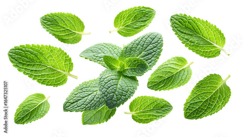 flying mint leaves isolated - on a white background PNG. GENERATIVE AI